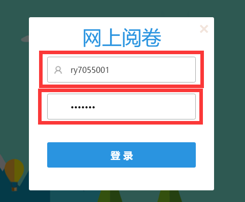 打开网址后,点击“网上阅卷”,输入账号及密码(密码默认123456,登录后均可修改),即可进入开始阅卷;